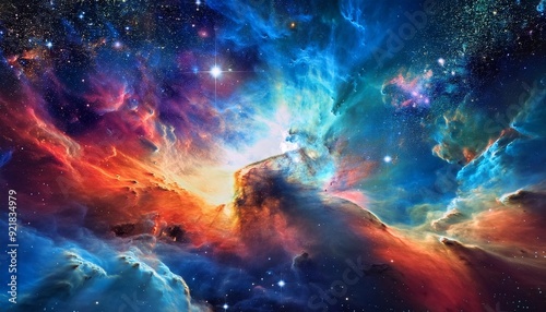 A mesmerizing cosmic landscape showcasing a vibrant nebula with swirling colors and a distant star