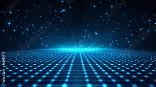 A mesmerizing digital landscape with glowing blue dots and a cosmic backdrop, perfect for futuristic and tech-themed projects.