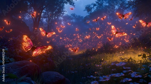 A mesmerizing scene with glowing butterflies in a mystical forest setting.