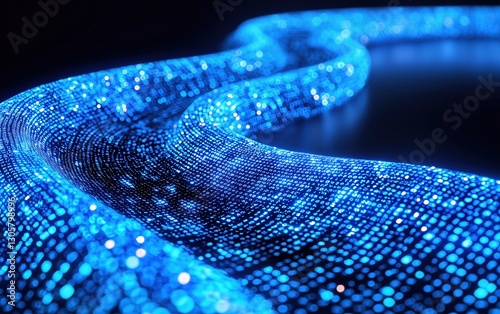 A mesmerizing wave of blue lights creating a digital effect against a dark background.