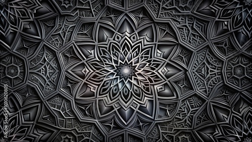 A Metal Latticework of Interlocking Geometric Patterns Creating a Symmetrical Design of Stars and Flowers