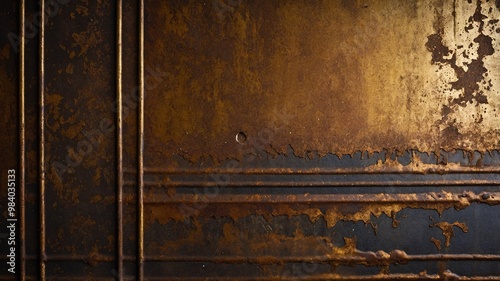 A metal surface showcasing a beautiful blend of aged look with golden patina and textures, capturing a rustic charm.