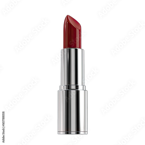 A metallic lipstick in a deep red-maroon hue