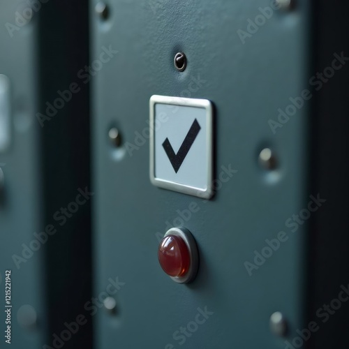 A Metallic Panel with a Check Mark and Illuminated Red Button
