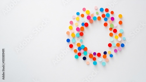 A minimalist composition of colorful dots arranged in a circular pattern on a plain background, Signifying inclusivity and diversity, photography style