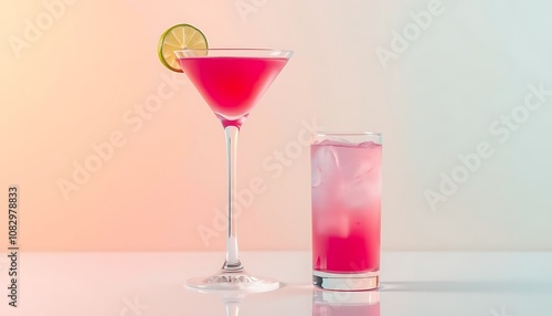 A minimalist cosmopolitan wallpaper featuring a pink cocktail in a martini glass with a lime twist, set against a clean background.