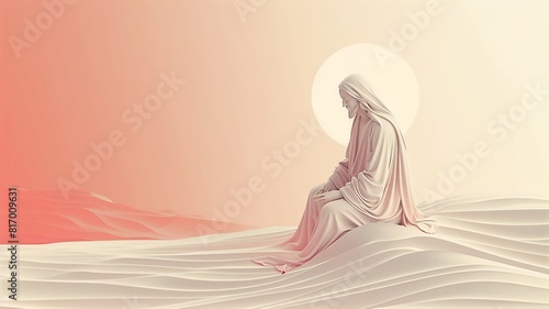 A minimalist graphic representation of Jesus praying on the Mount of Olives, characterized by clean lines and simplicity, conveying a serene and contemplative moment in a modern artistic style.