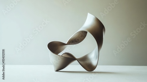 A minimalist metal sculpture on a plain white background, emphasizing form over decoration