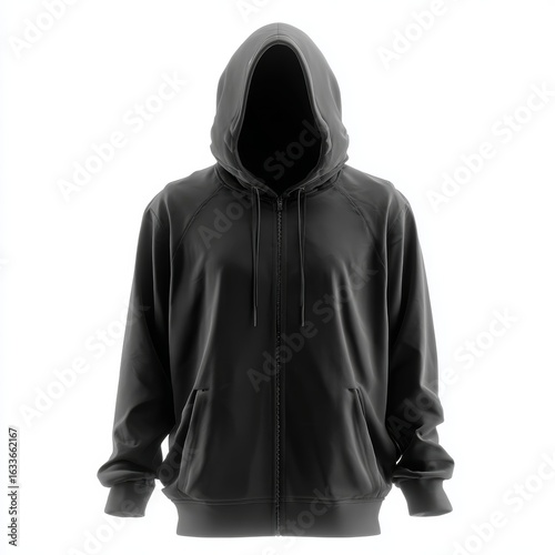 A minimalist, stylish black hoodie captured in studio lighting, demonstrating an essential garment