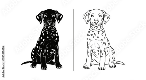 A minimalist vector illustration of two dalmatian dogs in black and white