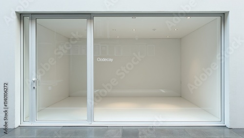 A minimalist white storefront with a clean facade, showcasing an empty space and modern design, exuding elegance and simplicity