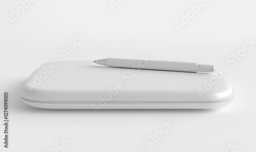 A minimalistic white notebook and pen on a clean surface, ideal for creative brainstorming sessions