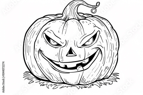 A mischievous grinning pumpkin with exaggerated features, set against a simple background, perfect for Halloween-themed decorations.