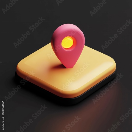 a modern 3D illustration of a location pin icon on a round map base with soft blue and orange tones, symbolizing navigation.