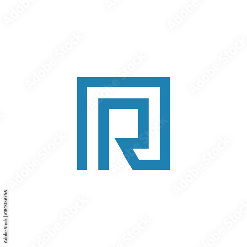 A modern, abstract, and geometric blue letter R logo design within a square frame.