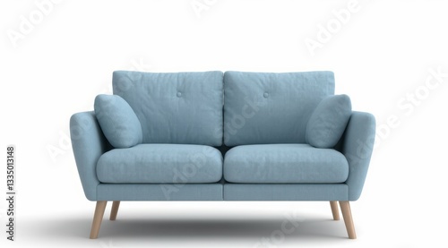 A modern blue sofa with plush cushions and stylish design.