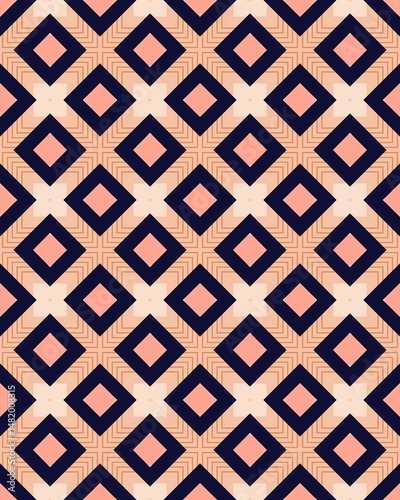 A modern geometric design showcases repeating diamonds and squares in contrasting shades, creating an eye-catching visual effect