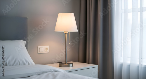 A modern lamp with metal stand, placed neatly on bedroom