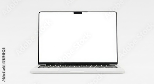 A modern laptop computer with blank white screen, isolated on a white background.
