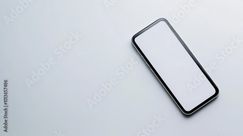 A modern smartphone lying flat on a white surface, the screen turned off, highlighting sleek design and technology.