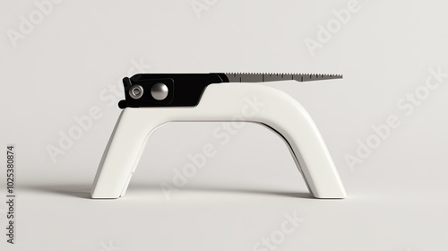 A modern white paper cutter tool isolated on a clean background, showcasing its sharp blade and ergonomic design for precision cutting.
