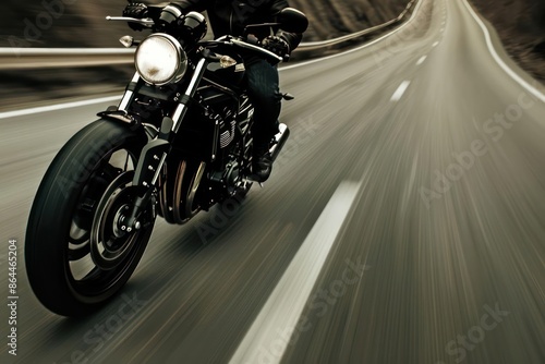A motorcycle speeding down a highway, isolated with space for copy on a dynamic banner