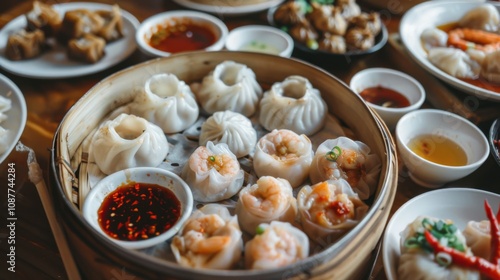 A mouthwatering platter of assorted dim sum, including dumplings