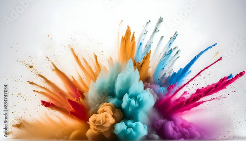 a multicolor powder blast spreading across a pristine white background,