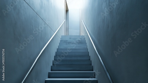 A narrow staircase with metal handrails, leading to a rooftop loft apartment.