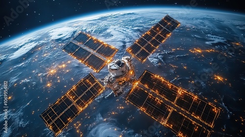 A network of satellites and telecommunications surrounds Earth, demonstrating advanced global communication technology.