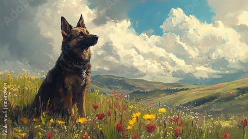 A Noble Dog Gazing Across a Scenic Meadow
