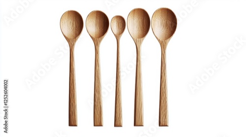a Nordic-style spoon set, Scandinavian simplicity, sleek wooden finish, light oak, isolated on white background