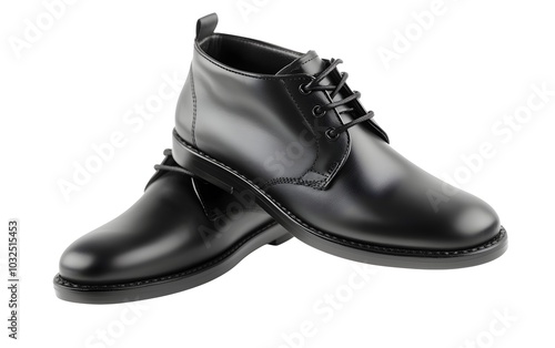 A pair of black leather gloves, isolated on a white background, with soft texture and clean stitching visible