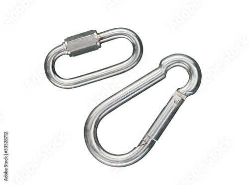A pair of carabiners for the best security while climbing in mountain, isolated on white background