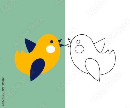 a pair of cute yellow bird vectors in color and outline vector EPS format