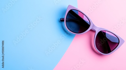A pair of stylish purple cat-eye sunglasses rests on a vibrant blue and pink background, making it perfect for fashion, summer products, or lifestyle-themed promotions