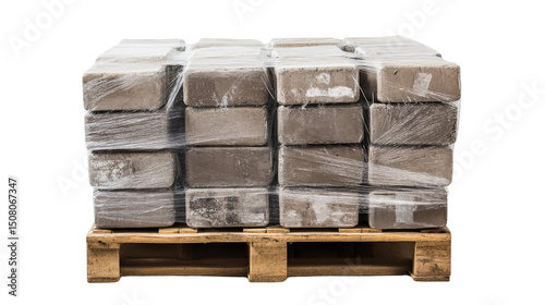 A pallet of cinder blocks wrapped in plastic, Transparent background, PNG file