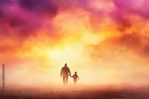 A Parent and Child Walk Together Through a Vibrant Sunset