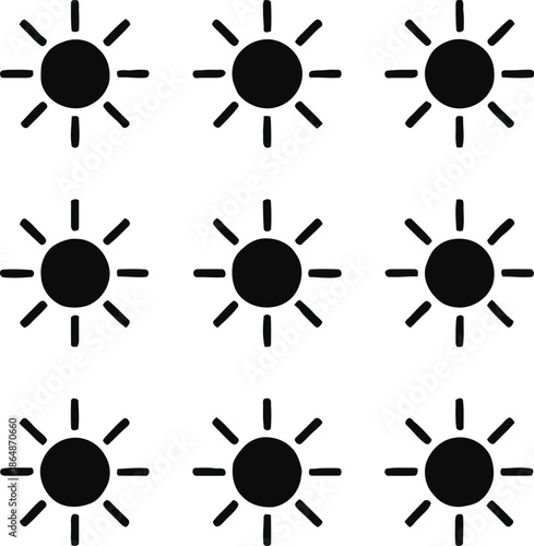 A pattern of black suns on a white background viewed from directly Page Page overhead Page