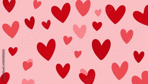 A pattern of small red and black hearts on a white background, flat design, vector illustration, no shadows,