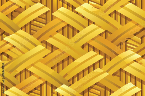 A pattern of yellow and brown objects, including bananas and chairs, bamboo basket texture