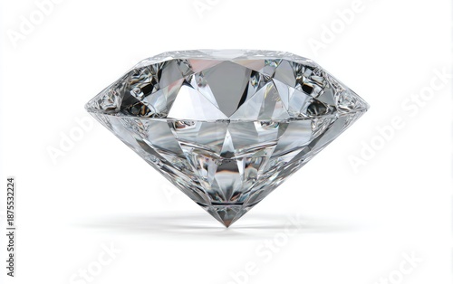 A perfectly cut, glistening diamond with many facets, isolated against a plain white background