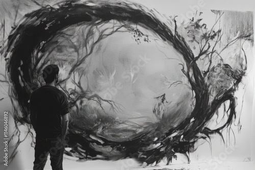 A person admiring an artwork