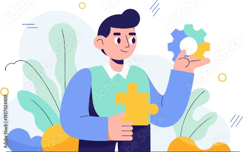 A person holds puzzle pieces, symbolizing solutions and problem-solving