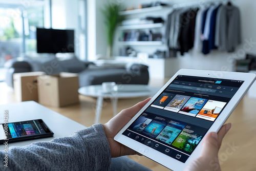 A person sitting comfortably at home makes purchases online. AI generative.