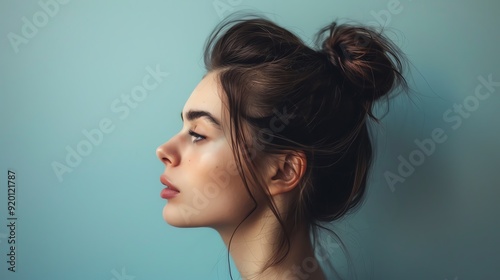 A person with a side bun, featuring hair gathered into a stylish bun positioned to one side