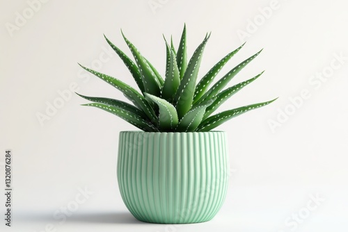 A photorealistic aloe vera plant in a mint green ribbed pot showcasing minimalist design and vibrant greenery for modern decor.