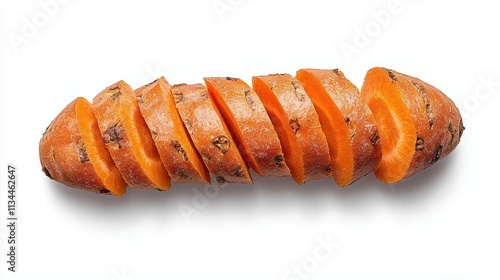 A photostock of a peeled and sliced carrot arranged on a seamless white background, symbolizing natural health and vibrant color. High Quality