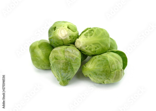 a pile of Brussels sprouts on a white background.