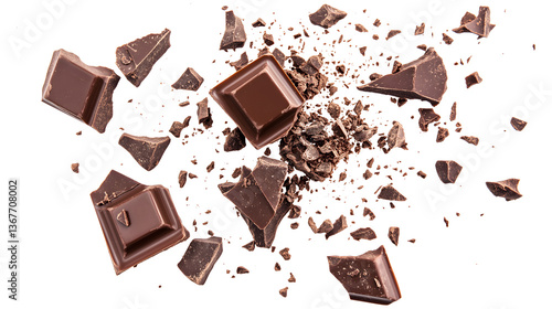A pile of chocolate pieces scattered